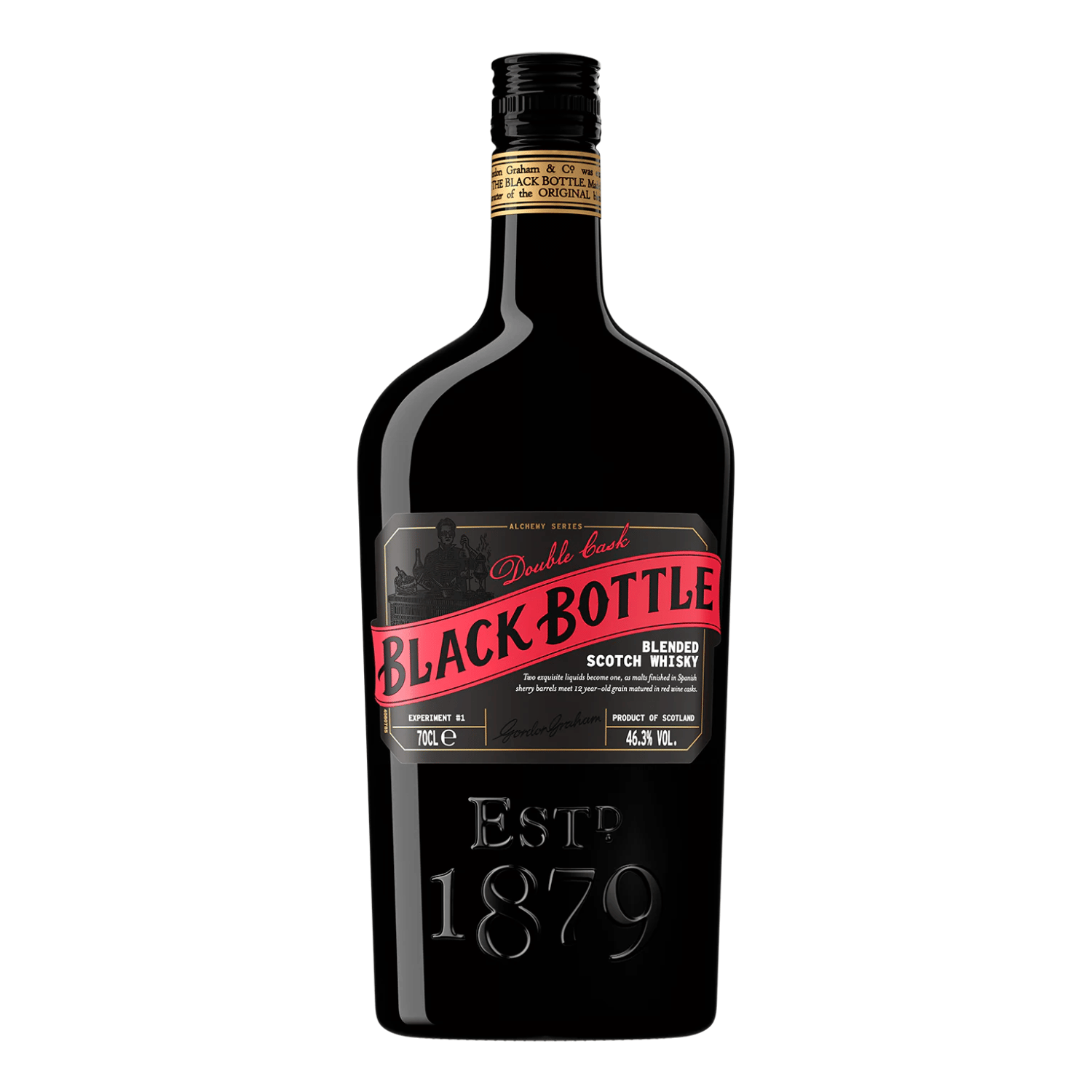 Black Bottle Alchemy Series #1: Double Cask is a limited edition exploration of the classic Black Bottle range, bottled at a confident 46.3% abv to best showcase this beautifully constructed Scotch. This particular expression is a fascinating blend of malt whisky finished in Spanish sherry barrels, and 12-year-old grain whisky matured in red wine casks.