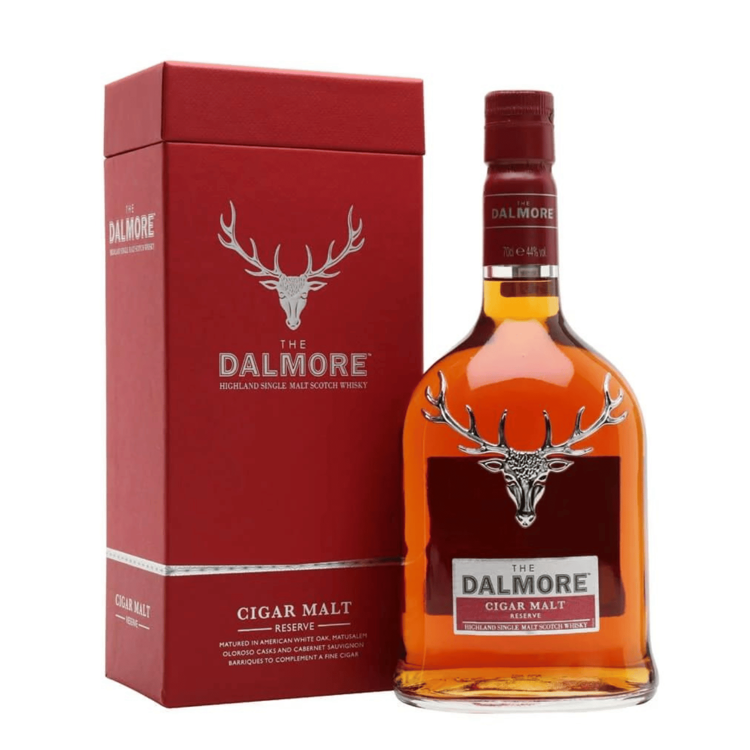 The perfect accompaniment to the finest cigars, this exquisite Highland Single Malt is matured in American white oak ex-Bourbon casks, Cabernet Sauvignon barriques and Matusalem Oloroso Sherry Casks, exclusively available to The Dalmore whisky makers.